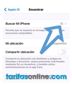 Toca donde dice “Buscar mi iPhone”.